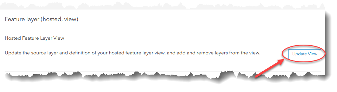A hosted feature layer view looks and acts much like a hosted feature layer. However, layer views don’t have data of their own. As the name implies, layer views are simply a second view of a hosted feature layer that enables you to maintain a public facing layer view while keeping the feature layer behind it hidden.