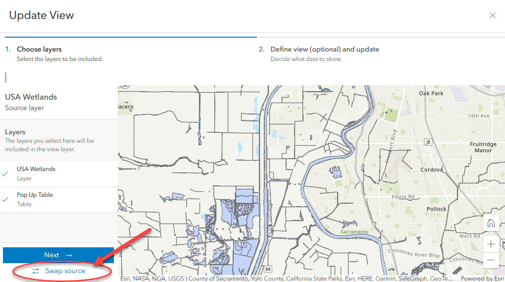 The Update View window will open. Select “Swap source” at the bottom of the window.