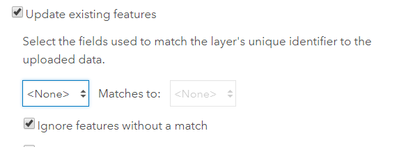 With this release, it’s also easier to only update the attributes for your existing features. If the data you upload contains more features than what matches to your feature layer, you can choose Skip features without a match so that any data in the uploaded file that doesn’t match to a feature in the layer is ignored. If you happen to upload data that has a different geometry type than the feature layer, rather than preventing you from going further, the Append workflow will now let you do an attribute-only update to existing features.