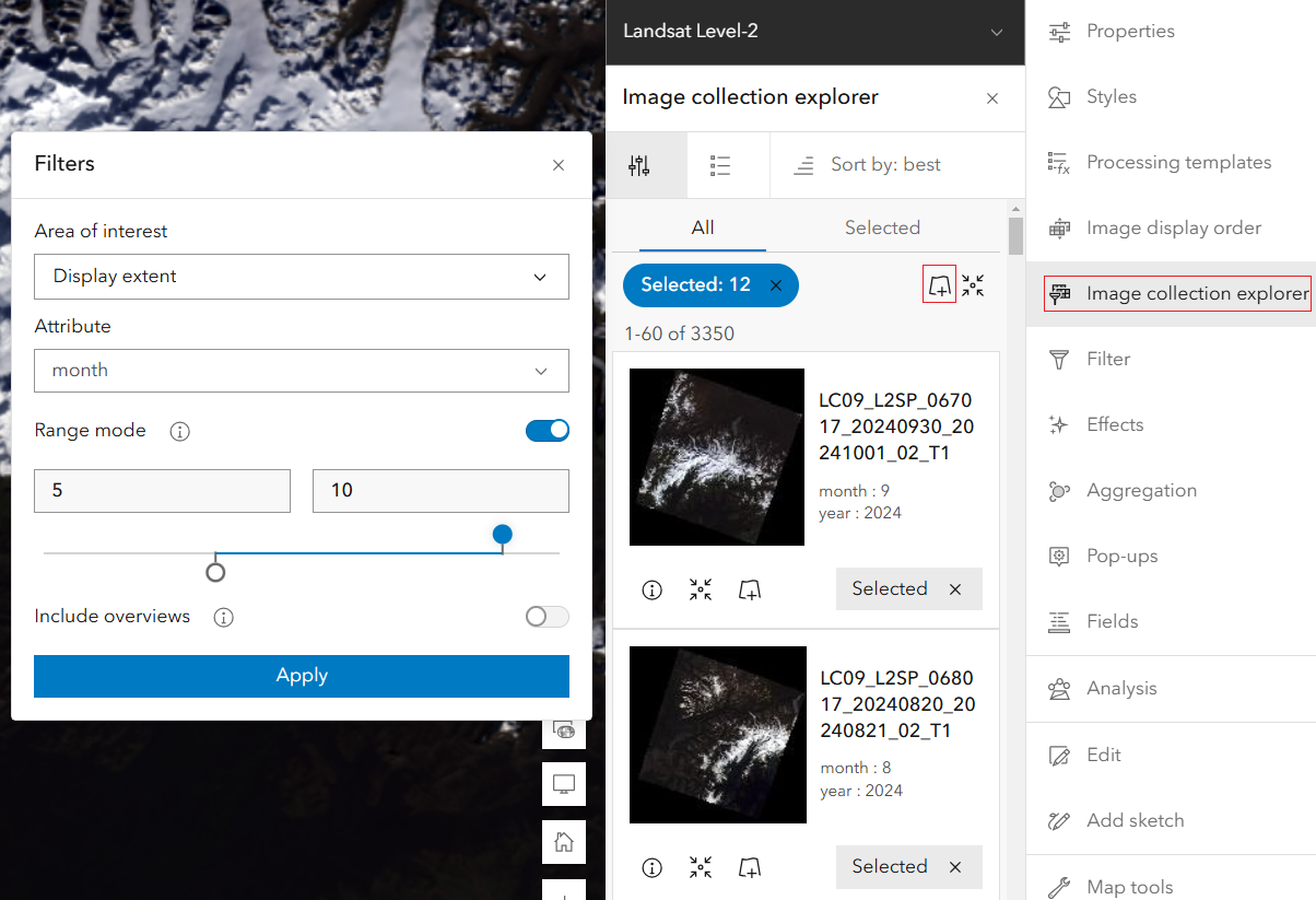 - Use the Add to map button to add the selected images as a new layer to the map.
