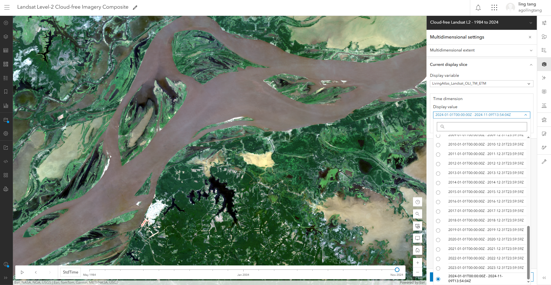 Additionally, the seamless integration with ArcGIS, enables users to leverage preconfigured image analysis tools such as raster function templates and deep learning models to make extracting insights from this data easier. Read on to see an example of how you can use these tools and perform analysis on Landsat data in ArcGIS Online.