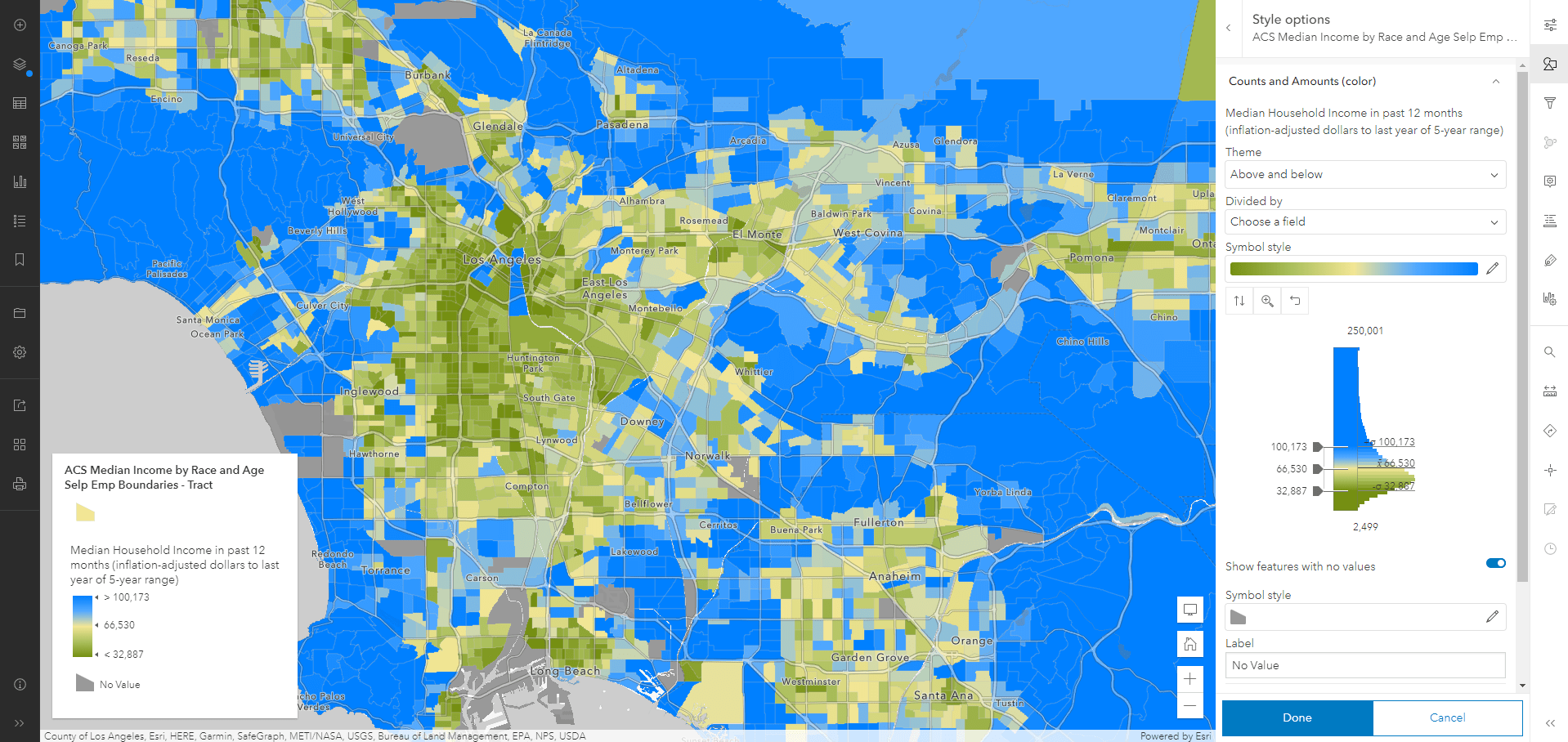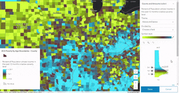 As map-makers, we are entrusted to make strong, ethical, and data-driven decisions when creating our maps. Our decisions help communicate the statistical and analytical stories about our data which wouldn’t have otherwise been seen. Therefore, the histogram of our numeric data is crucial to our mapping decisions. Map Viewer has recently been given a facelift to help you make stronger choices when showing numerical data in your maps. Let’s explore these updates along with some tips for using them effectively.