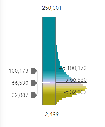 Did you know that smart mapping immediately shows you statistically significant patterns when you choose to map a numeric attribute from your data? By default, when you choose a Counts and Amounts (Color) drawing style, an unclassed mapping style is suggested. The color breaks are based on the mean, and 1 standard deviation above and below the mean. These settings ensure that the statistically extreme values and outliers don’t overly dictate the map’s colors. The unclassed color ramp tells you that the color variation is applied over the spread of data values, representing 90% of your data. The outliers and statistically significant values are emphasized, helping you find important patterns in your data.