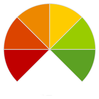 The needle points to 225 degrees, which is %0 full on our scale. At 135 degrees the dial shows %100 full. So the rotation of the needle going from %0 to %100 is 270 degrees. Divide 270 by 100 to determine degrees to move the needle to show the corresponding percentage. See the comments in the expression below.