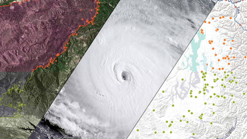 Within the Living Atlas is a “Recent Hurricane” layer that features tropical cyclone (hurricanes, typhoons, cyclones) tracks and positions from the past year for the Atlantic, Pacific, and Indian Basins. Esri hosts this data from the National Hurricane Center (NHC) and Joint Typhoon Warning Center (JTWC).