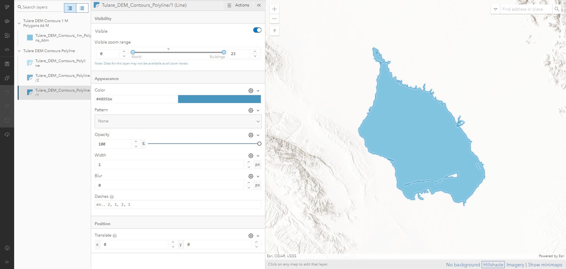 Lastly ‘Multiply’ the lake in the Map Viewer which gives it a more fluid look and integrates it into the landscape.