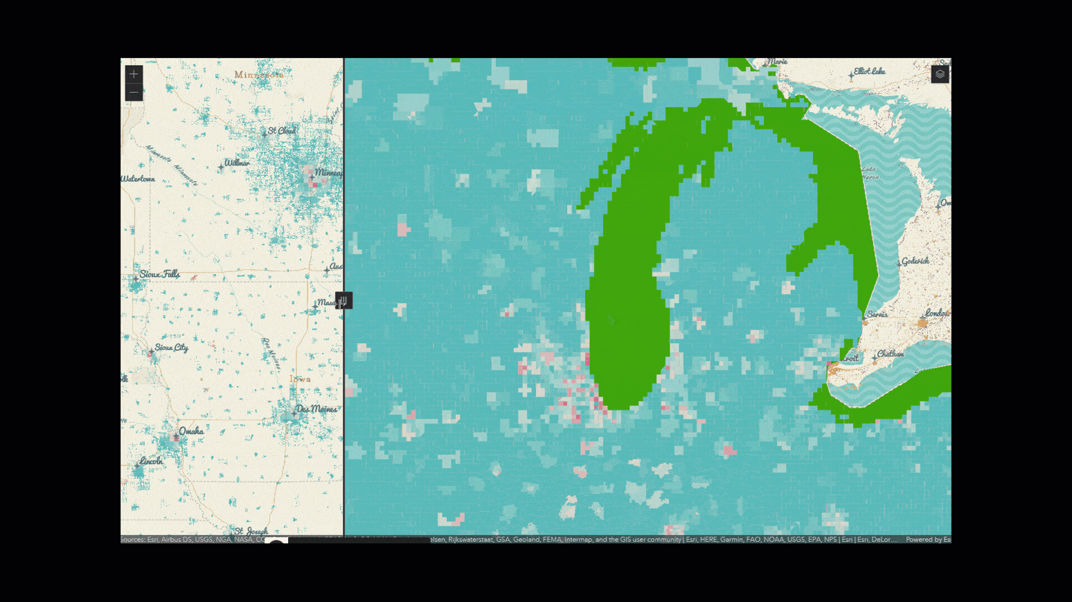 Log in to ArcGIS Online, add some layers to Map Viewer Beta, choose the topmost layer and cycle through each blend mode to see what it does. I highly recommend you take 15 minutes of your day to try that out. After doing that, try out Multiply mode and Destination-atop mode in the Map Viewer Beta. What other combinations of thematic content and blend modes are you thinking about? As always, thoughts and feedback are welcome in the ArcGIS Online Ideas community site.
