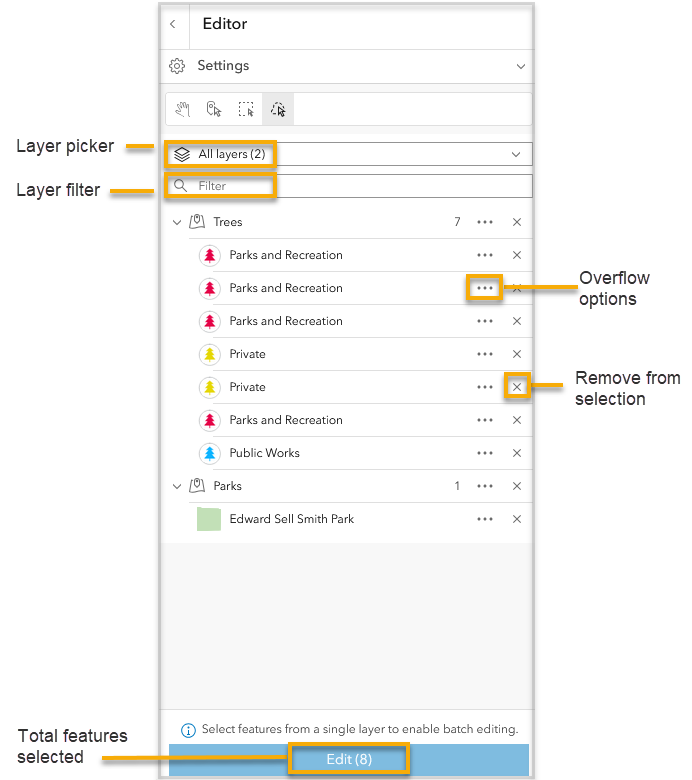 Prior to the June 2025 update, you could only select one feature at a time in Map Viewer. Now, when you open the Editor pane you will have a variety of selection tools to choose from.