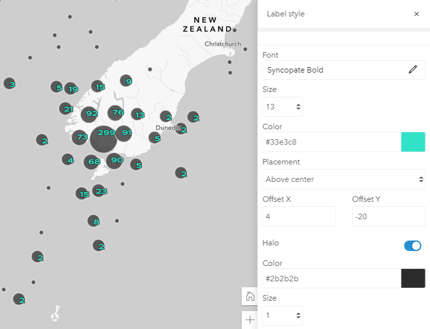 Easily adjust the font, size, placement, offset, and halo of your labels to give them a custom look and feel.