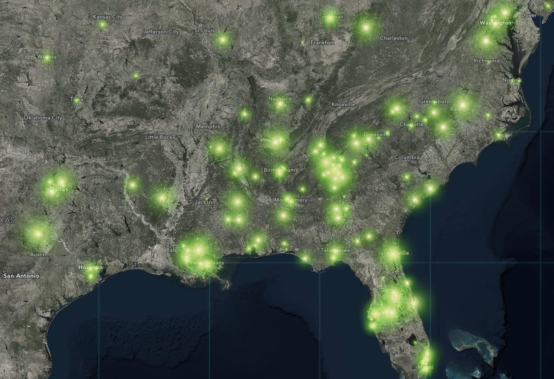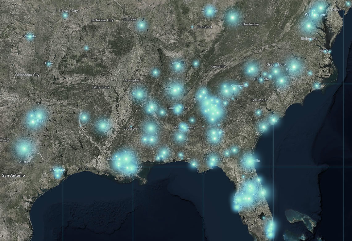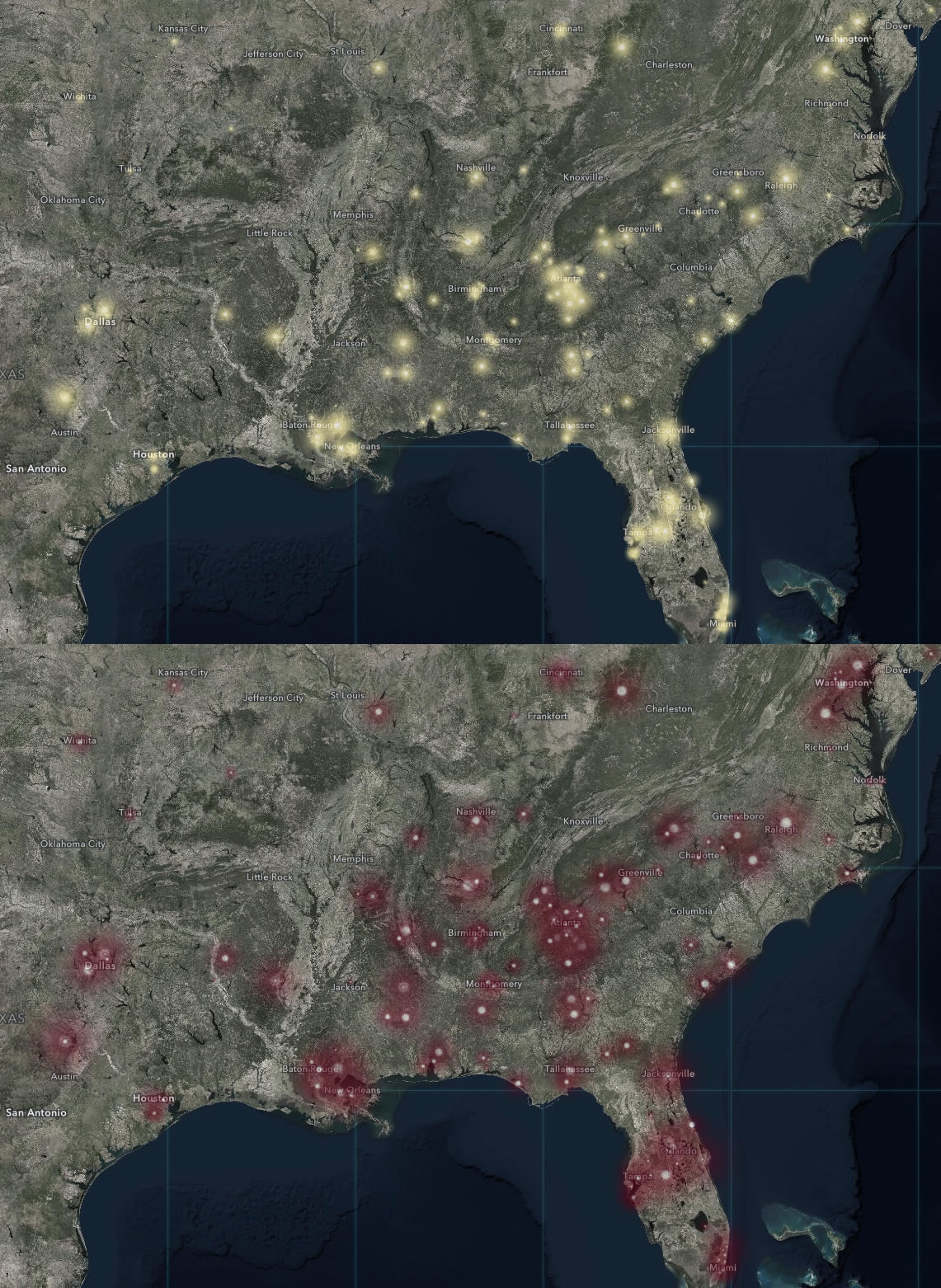 The glowtastic Firefly symbols in ArcGIS Online are lots of fun (I mean a practical and pragmatic spatial visualization mechanism for the foundational concept of geographic dependence, i.e. the proximally-diminishing influence a feature has on its surroundings).