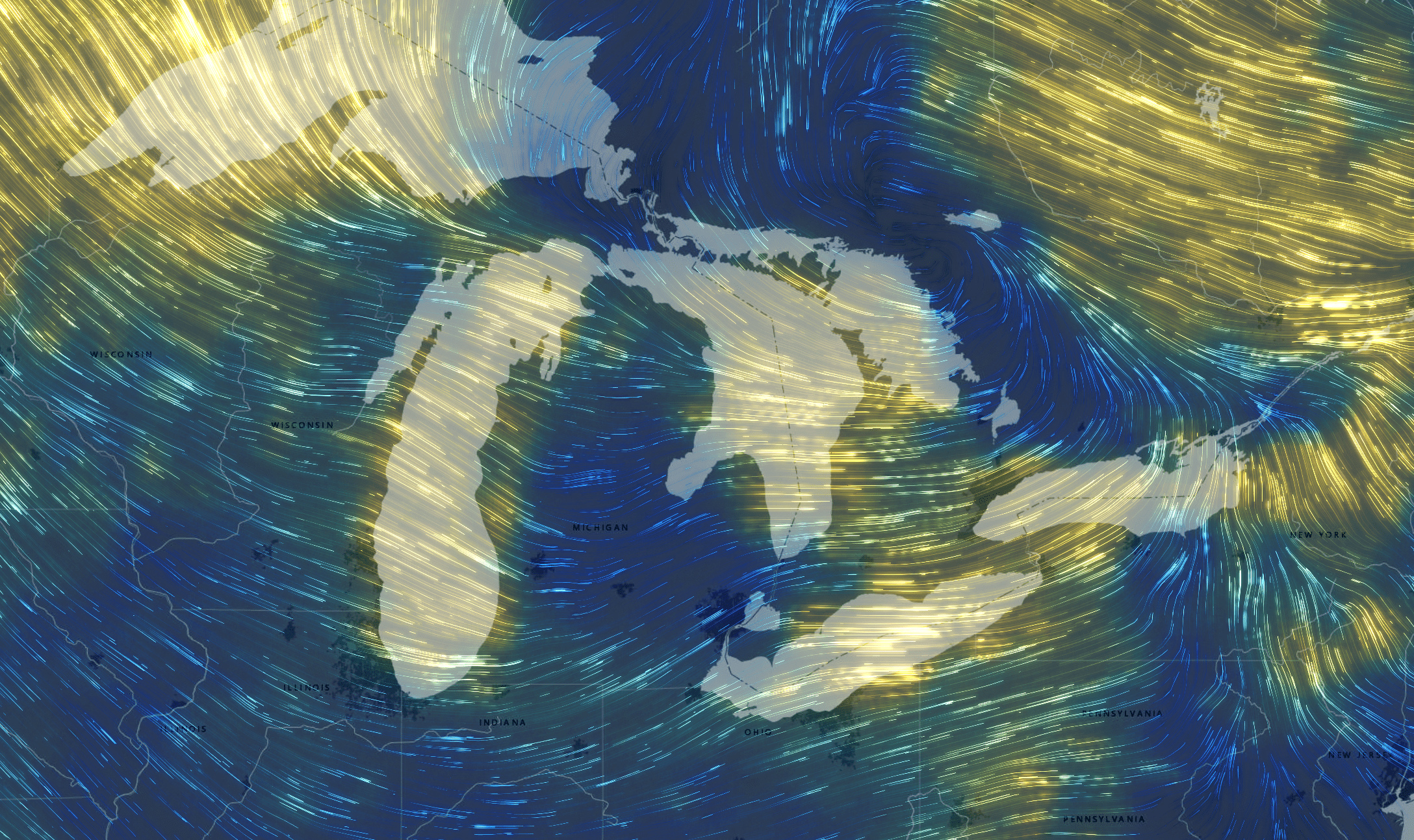 With this map be sure to use the time slider to explore how winds change day-to-day; the contrast in weather systems is really dramatic and beautiful. The map loads on day 1, but the rest of the year is just as interesting!