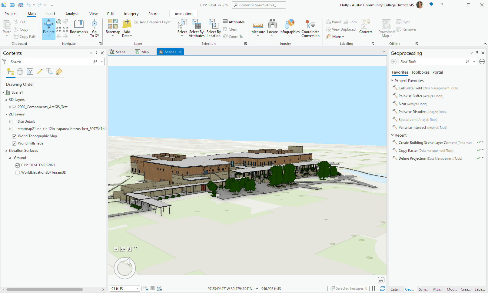 Austin Community College has been contributing to the Community Maps Program since 2013. The Facilities Information Systems team are in the beginning phase of building and using 3D in GIS for managing multiple campuses throughout the greater Austin region. They have about seventy-five buildings in their campus system and are experimenting with various 3D options, including contributing to the Community Maps Program.
