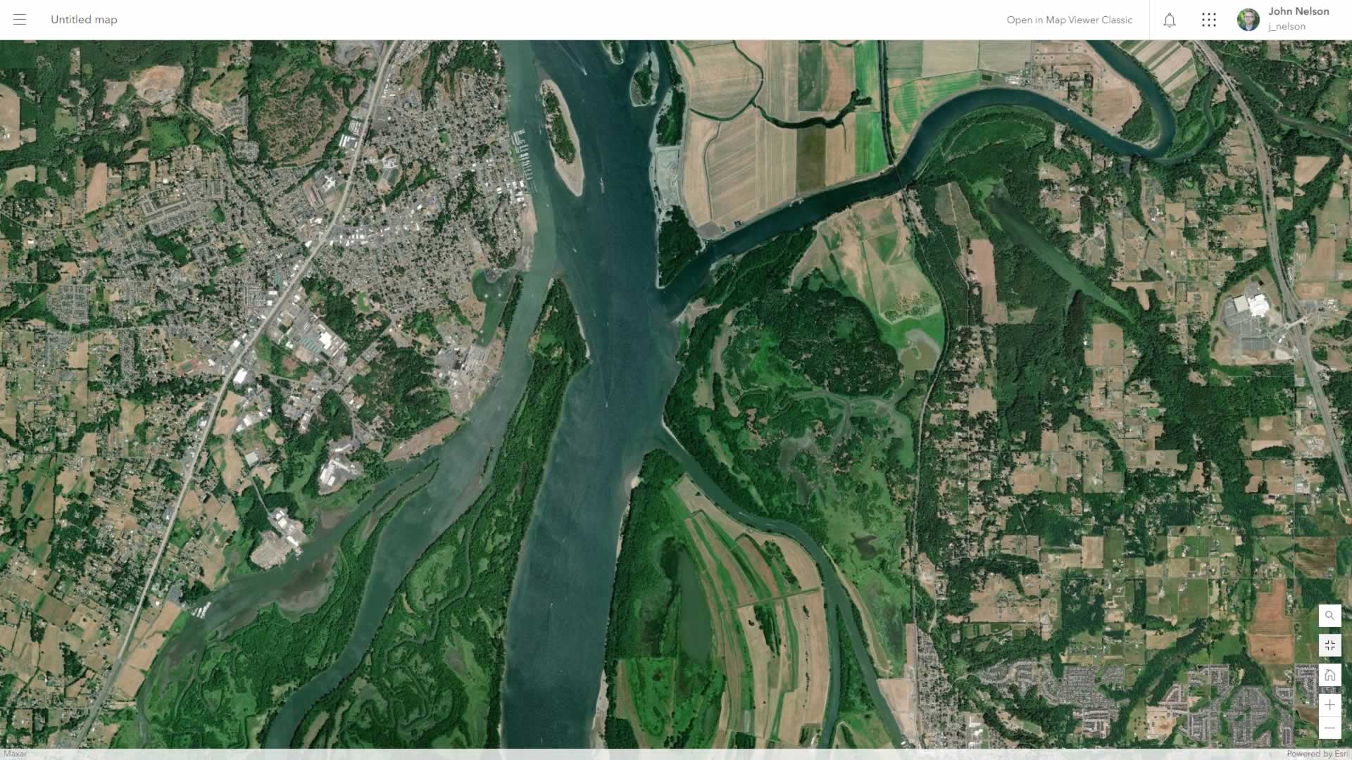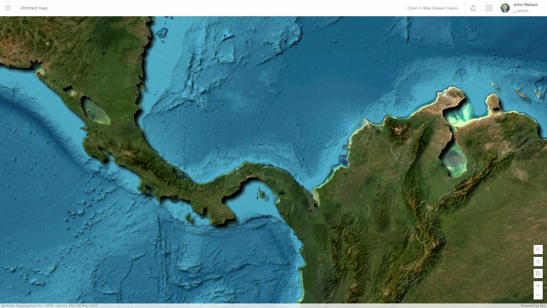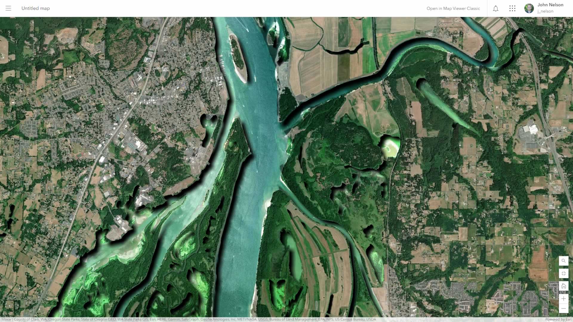 Ah the simple pleasures of the World Imagery basemap. So much earth. So much imagery. So many corners of this world to explore. How can we take something so verdant and charming and just ratchet it up to eleven? We’ll use a water mask and some layer effects, that’s how!