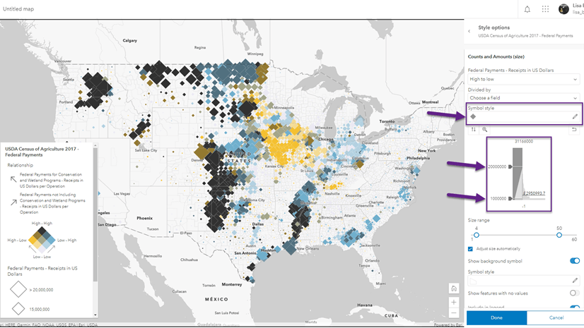 This post is the last of the how-to blogs promised in Our Four Favorite Ways to Map American Agriculture. In that blog I shared a method of combining two layers from ArcGIS Living Atlas using the Destination Atop Blending Mode in ArcGIS Online to create this map of wheat farming: