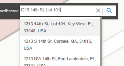 This has enabled the City of Key West to generate a local locator that’s quite handy. When using the city locator, typing in the word ‘lot’ after the street name exposes the lot number options in a dropdown list.