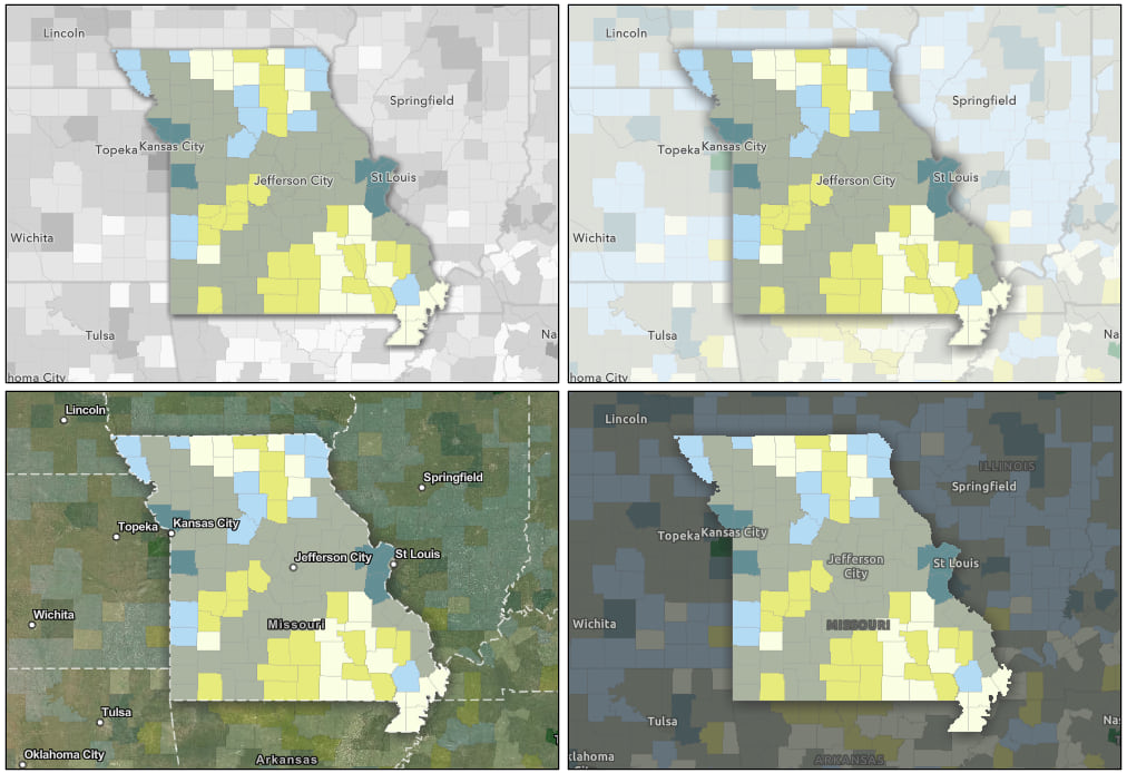 ArcGIS Living Atlas provides global, country-wide, and regional coverage for basemaps and many layers. But what if you’re interested in focusing on your state, county, city, or local project? Using blending and effects you can easily apply focus to Living Atlas basemaps and layers for your specific area of interest. Several approaches and examples are highlighted below. Follow the steps using the sample maps and layers to learn how.