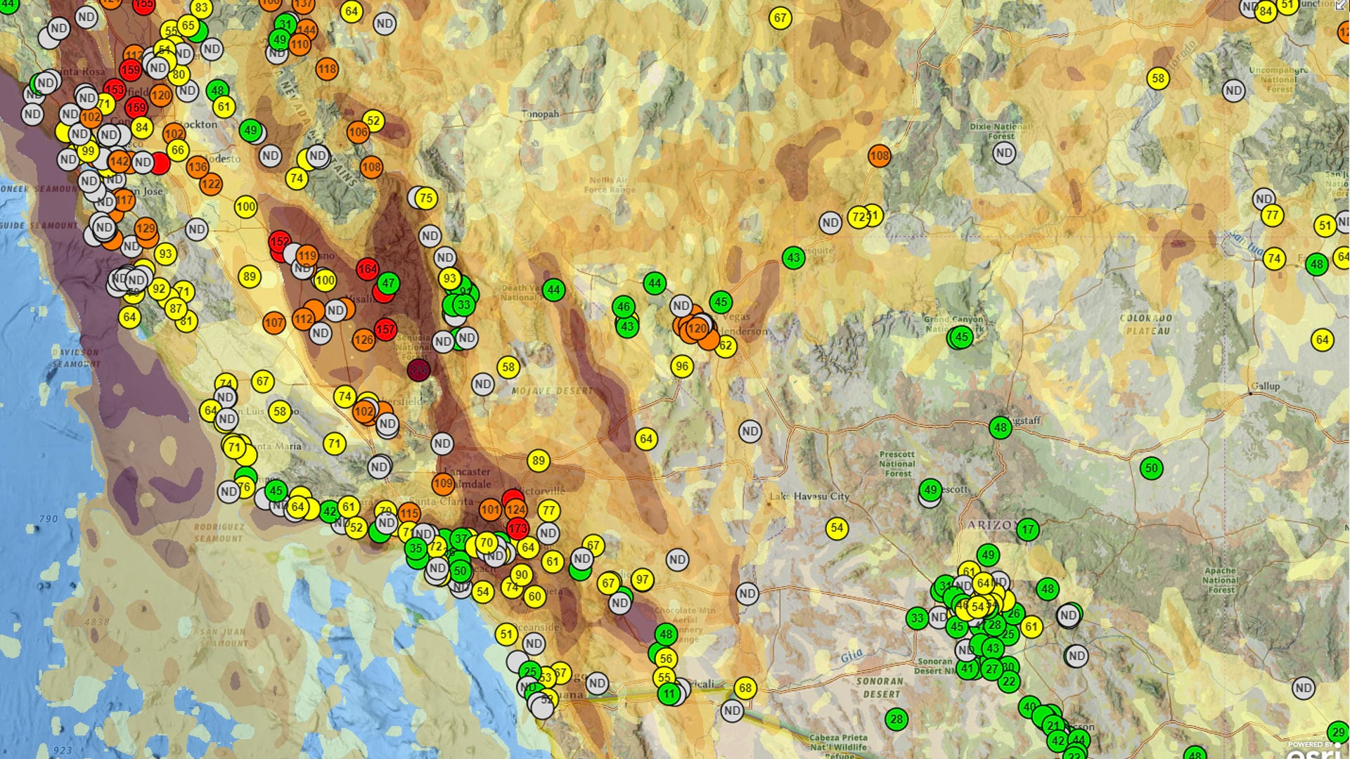 - Drop Shadow has been applied to the AirNow locations layer to make them pop.