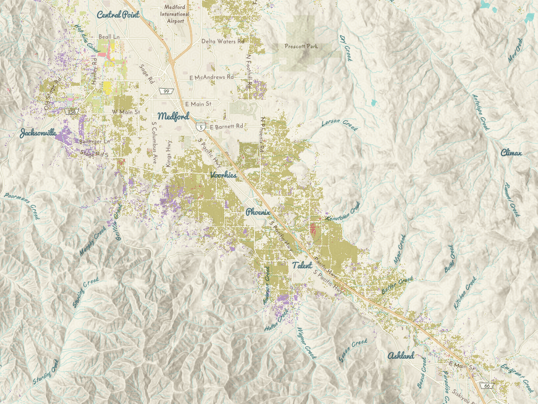 As a former resident of Talent, I watched with sadness as the news of the fire broke. Over the course of the next week I made a series of maps to understand what happened and to describe the fire in a landscape context for those unfamiliar with the region.
