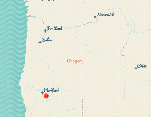 Location of the Almeda Drive Fire in southern Oregon indicated by the red dot.