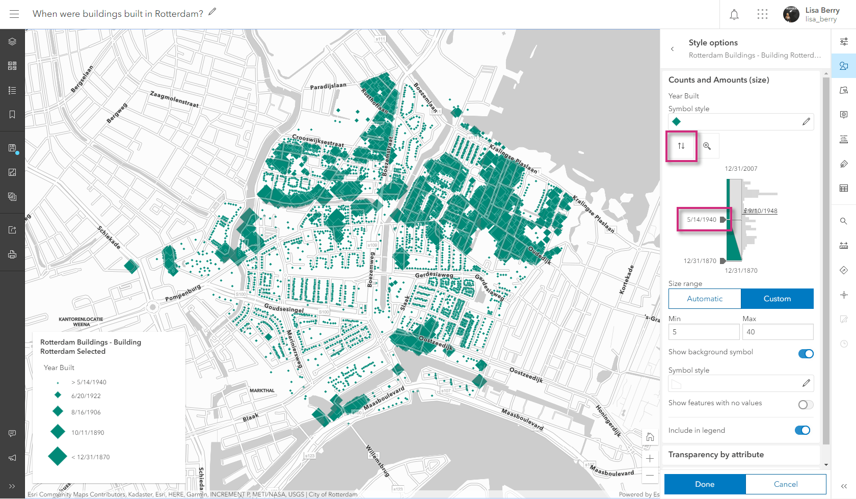 What if I want to tell a different story about the buildings using the “Year Built” field? No problem! Easily adjust your map by going into the Style options. Here, you can make adjustments based on what you want shown in your map. Let’s see what else can be done.