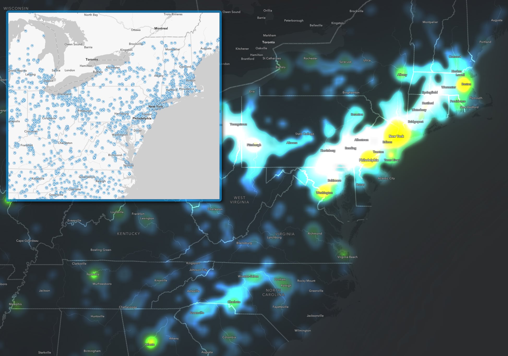 If you’ve ever thought “I have too many points on this map, I can’t see the forest from the trees” a heat map is there for you. This post covers the next generation of Heat Mapping in the June 2022 update of Map Viewer. It also covers some of the things I’ve learned making heat maps that should help you get the most from them.