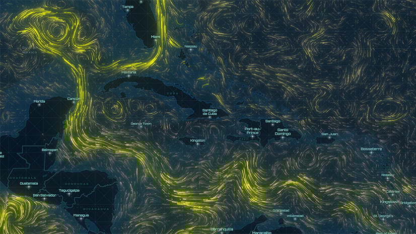 To create a flow visualization, your raster data must be comprised of either a pairing of magnitude/direction or U/V where U and V represent the horizontal and vertical components of a vector respectively. As long as the data has fields representing magnitude and direction or U and V, then the dataset can be used to visualize flow.