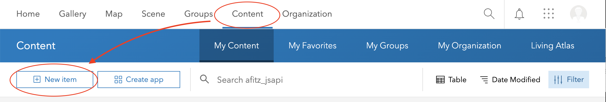 Now that you have your data, the next step is to publish it as a dynamic imagery or tiled imagery layer. Log in to ArcGIS Online or your portal instance, and go to the Content tab. Use the Add Item button to start the process of publishing your data.