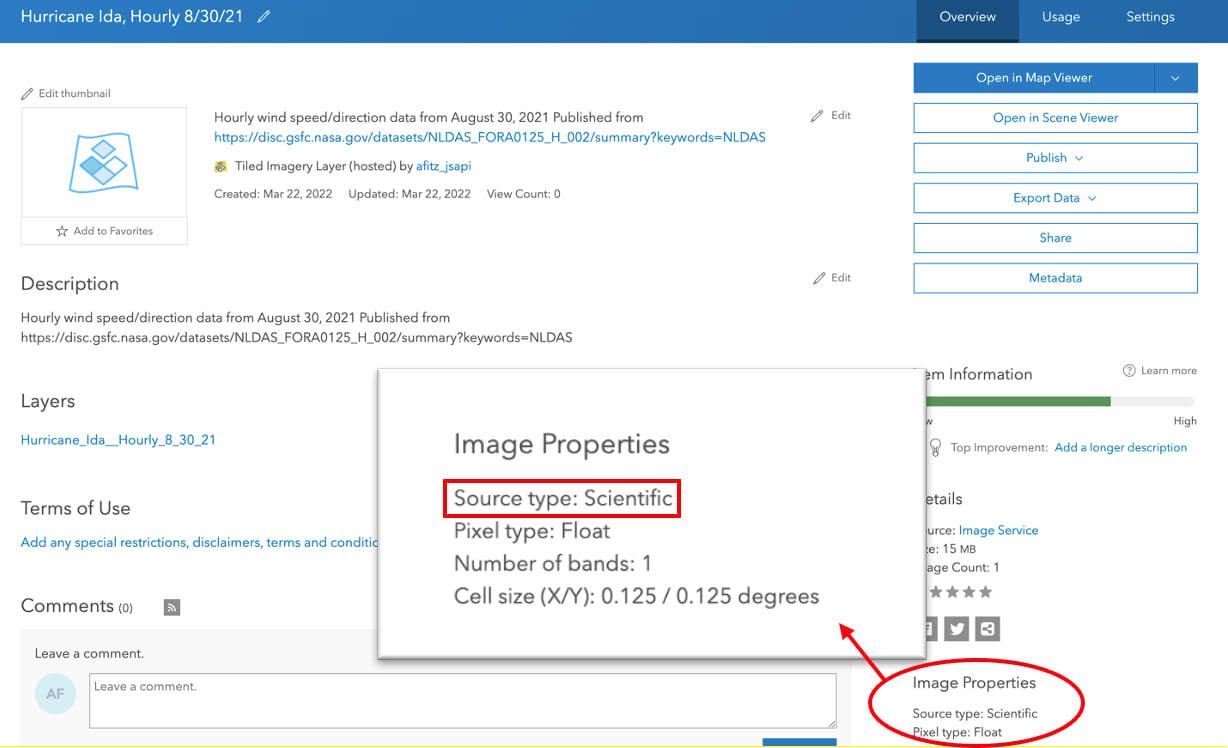 I’m going to walk through how to process data in ArcGIS Online using the raster analysis capabilities in Map Viewer Classic. Check out Visualize raster using a vector field in ArcGIS for more information about the different options for processing data in ArcGIS Pro and ArcGIS Online.