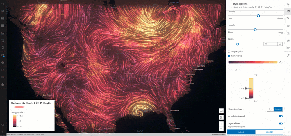 To learn more about the new Flow style in the Map Viewer, check out Map Viewer introduces animated Flow renderer.