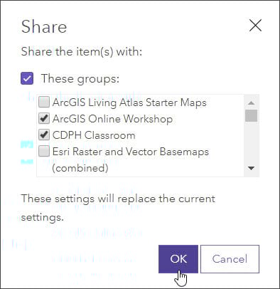 Items are content that has been added to ArcGIS Online. Learn ArcGIS lessons are now available as items organized into a group, so you can easily find them in ArcGIS Online and share them within your organization for use by coworkers, or favorite them for your own reference. This makes them even more valuable as resources to learn new techniques, workflows, and methods. You can favorite lessons for your own reference to improve your skills. Or you can find lessons that benefit current projects and activities of your organization, and share them with others.