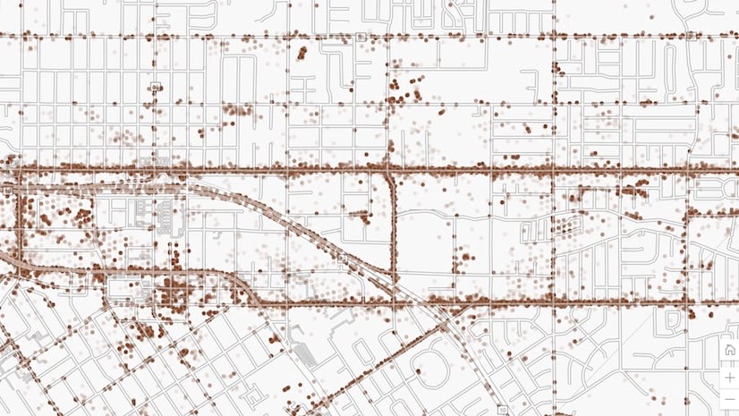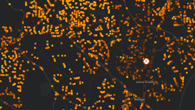 Use heat maps when you would like to show density, or when you have lots of overlapping points. Highlight areas with high activity with stronger colors that appear to glow hotter. You can visualize where there are lots of points or even locations of high and low values based on an attribute.