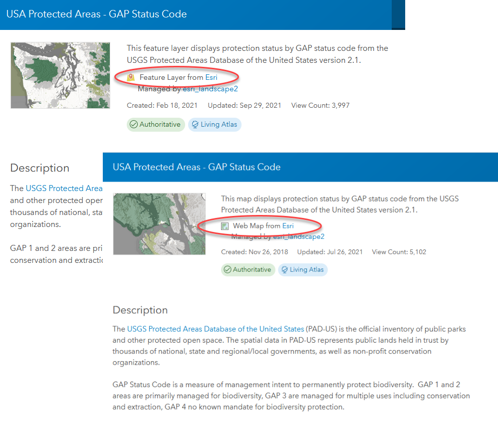 To view layers, we add them to a web map. Like layers, each web map is an item in ArcGIS Online. Web maps have a base map and may have one or more additional layers.