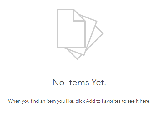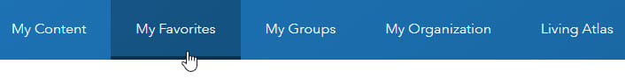 To add to your favorites, go to Content or use Search to locate items. In the returned items list, or on the item Overview, and click Add to Favorites. You can favorite your own items or items in your organization, or items you find in ArcGIS Online or ArcGIS Living Atlas.