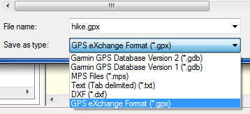 Under our Save as options, we select GPS eXchange Format as the file type, to save our hike as a GPX file.