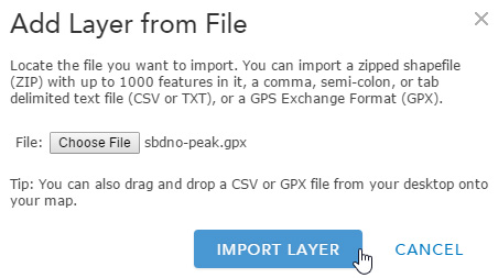 Then browse to the location of your GPX file to select it, then click Import Layer: