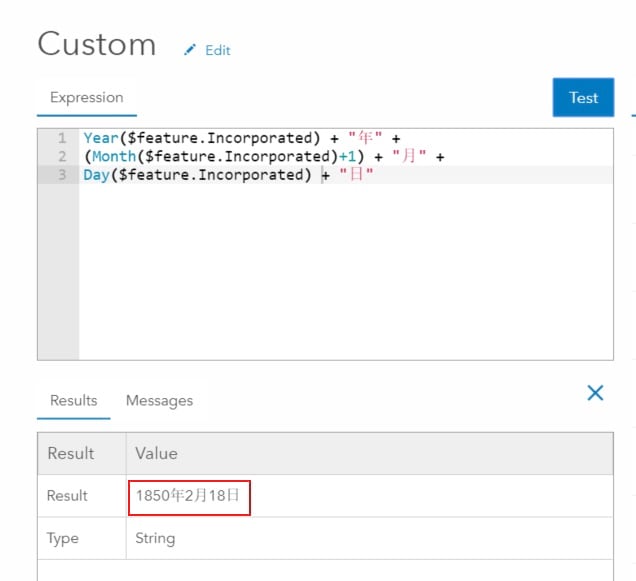 Year($feature.Incorporated) + "年" + (Month($feature.Incorporated)+1) + "月" + Day($feature.Incorporated) + "日"