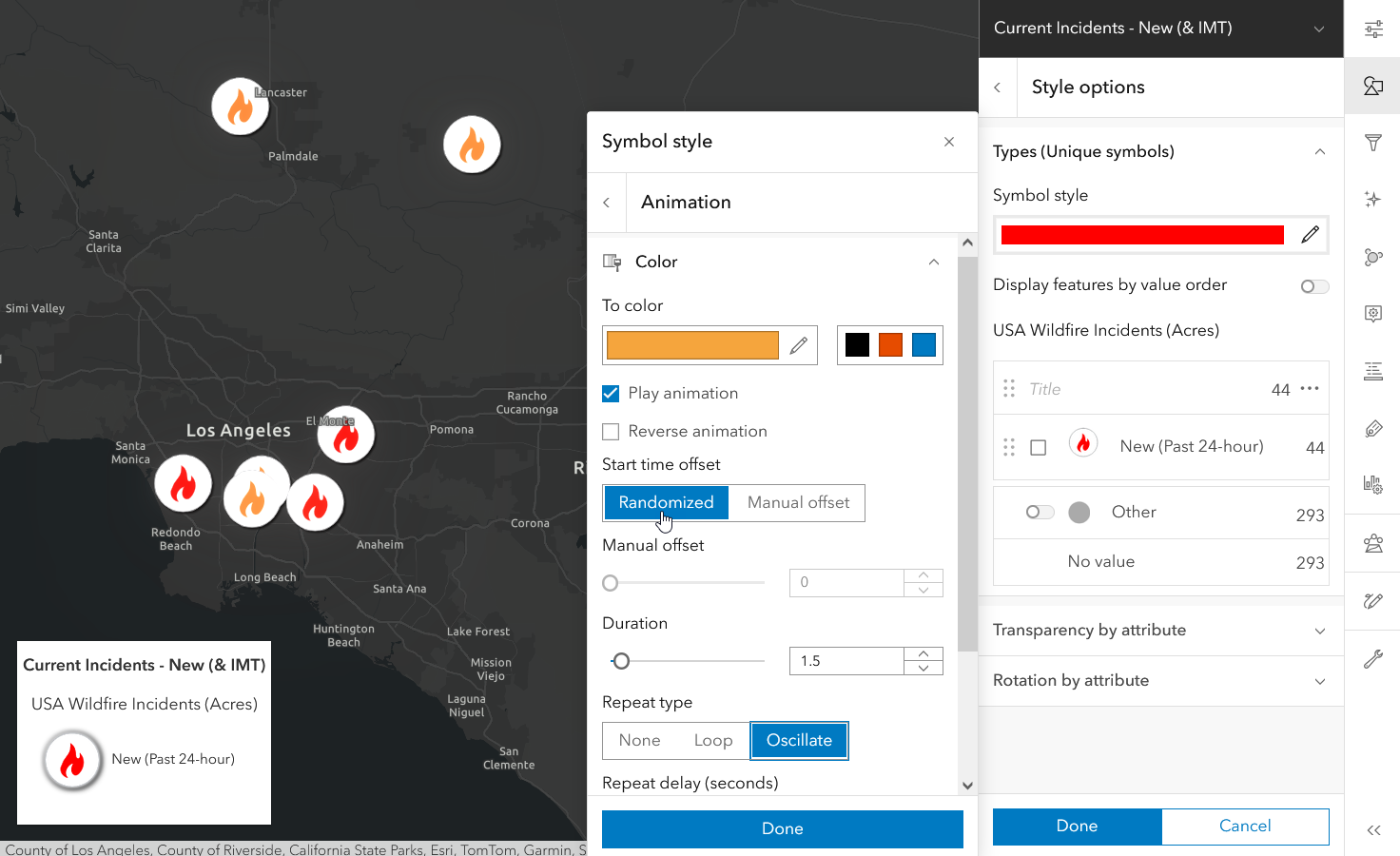 Additionally, take your maps to the next level with animated symbols in Map Viewer. Animated symbology is an engaging and powerful way to draw attention to key areas of interest in your data. Not sure where to start? We’ve got you covered with a variety of ready-to-use animated symbols.