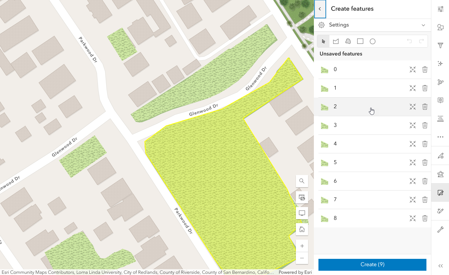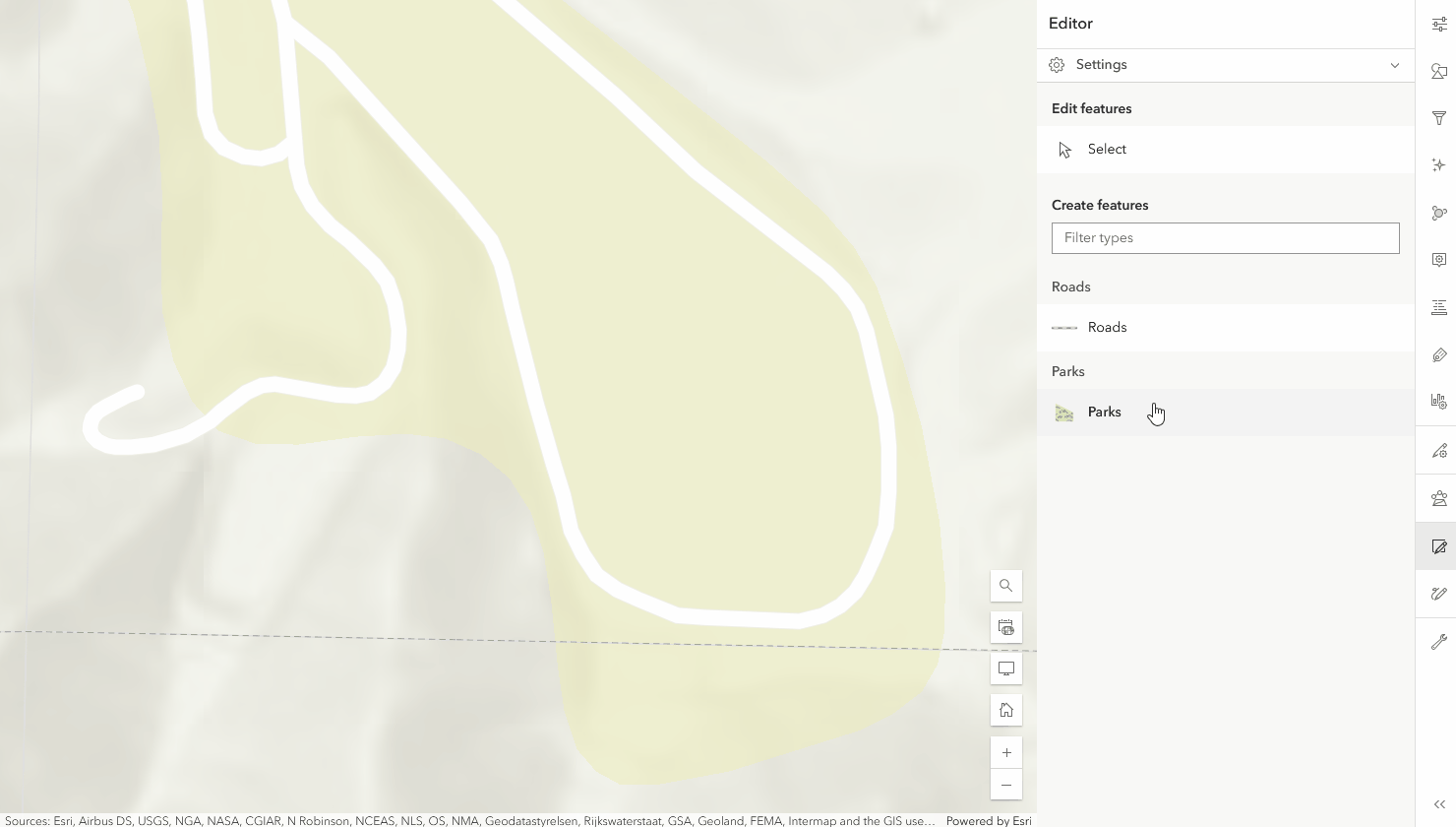 The editor now supports additional drawing tools when creating polygon and line features. Choose from the new freehand, rectangle, and circle drawing tools to make sketching even easier.