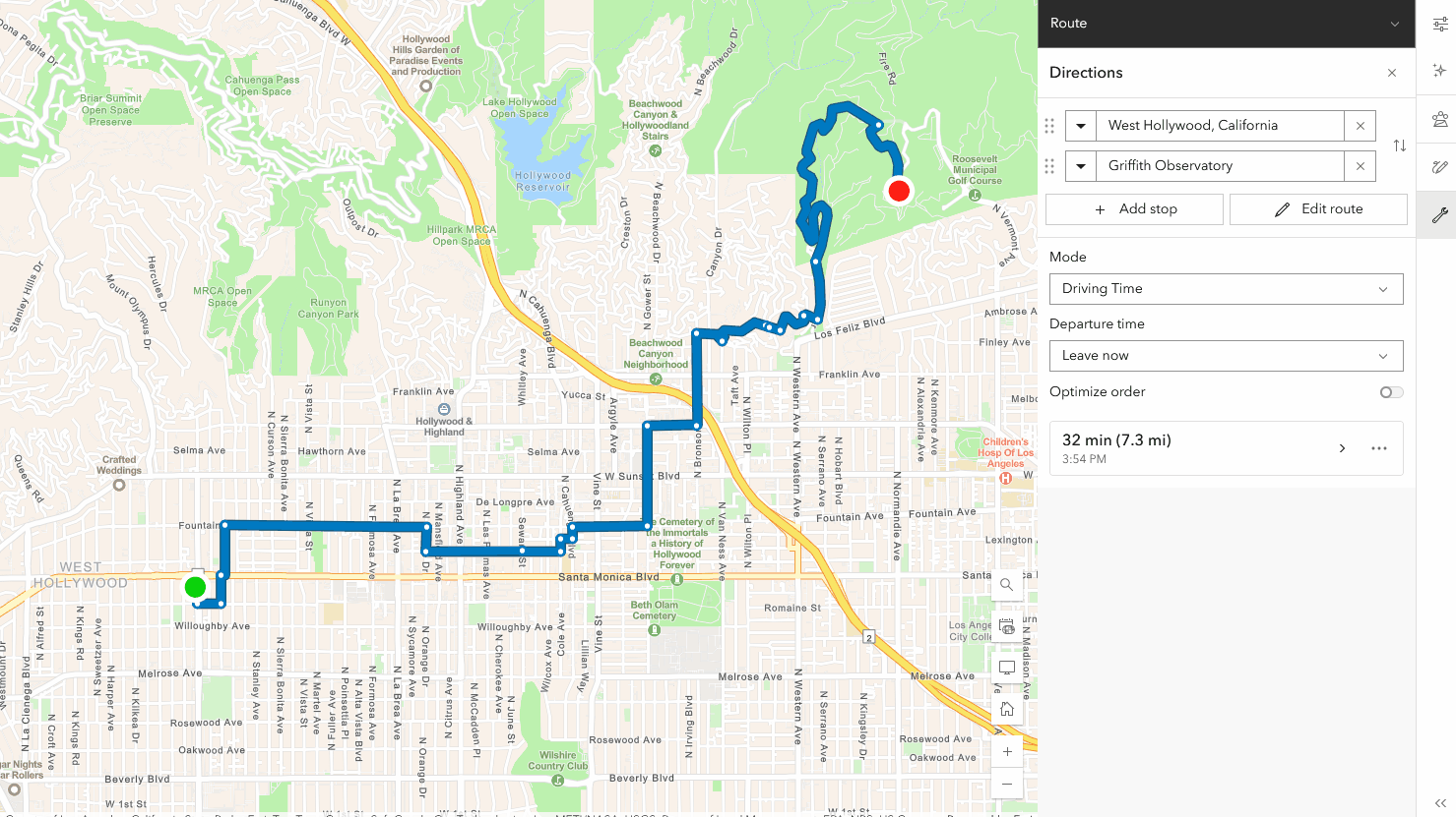 Are we there yet? Plan your route in advance with the new and improved Directions experience in Map Viewer. Updated with a sleek design and exciting enhancements, you now have more control when modifying routes. Select the Edit route button to dynamically add, change, and remove stops.