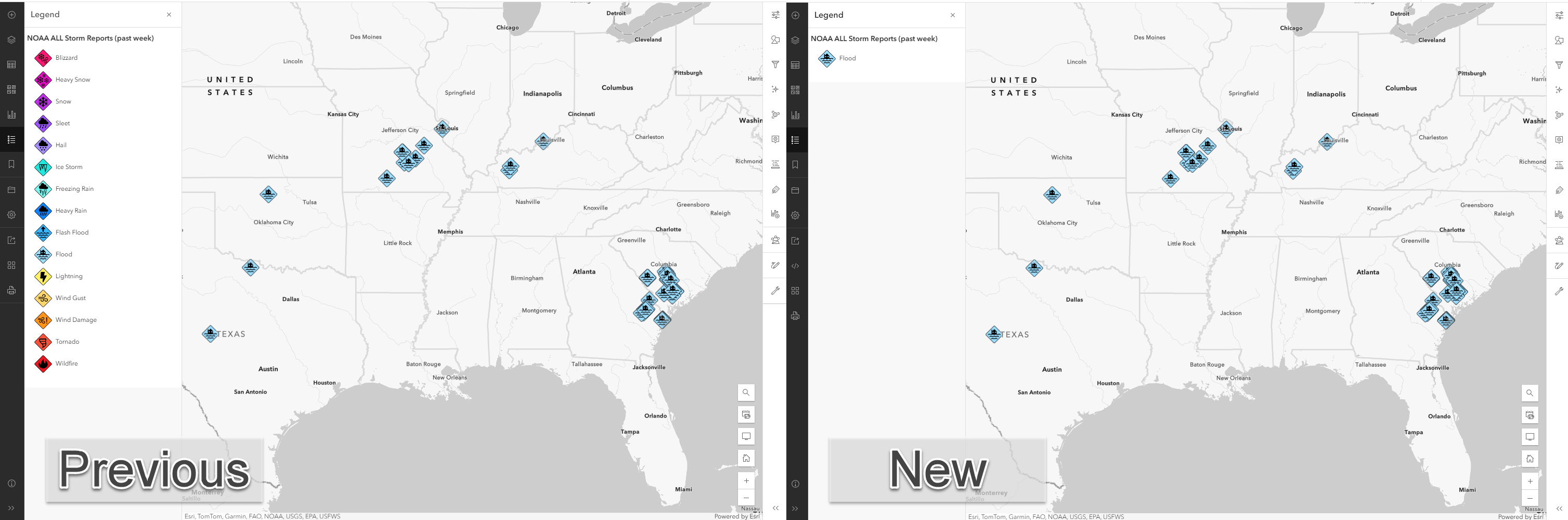 The legend will now honor layer definition filters present on fields symbolizing a feature layer. Previously in Map Viewer, the legend was automatically generated regardless of layer definitions.