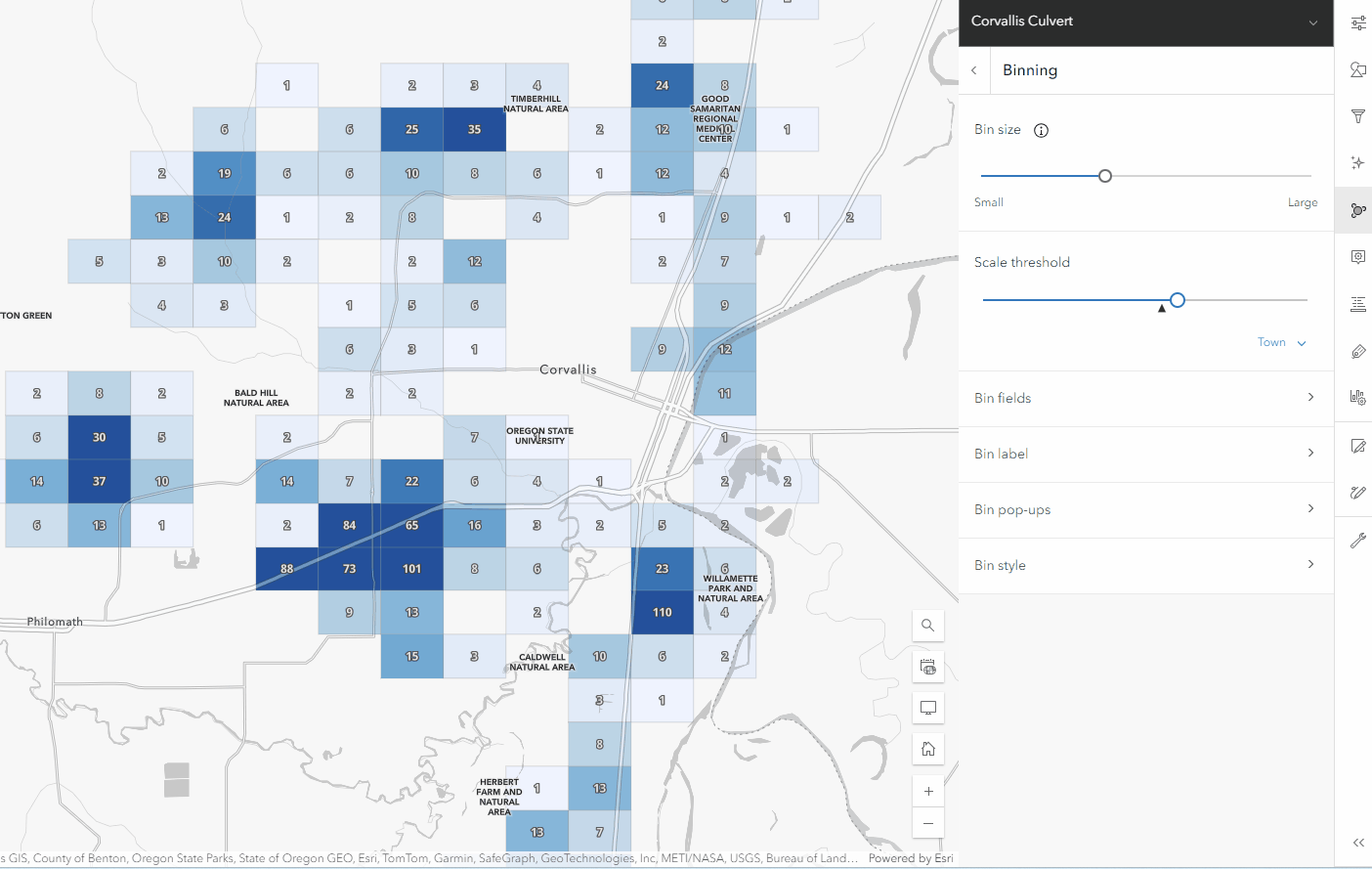 Calling all geometry types! Binning is no longer limited to just points – you can now configure and style bins for lines and polygons. This is particularly impactful for features that may not be visible at smaller scales (zoomed out). Adjust the Scale threshold to turn off aggregation and display the original features to your liking.