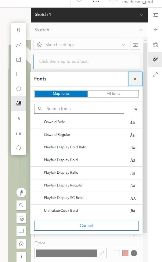 Another small, but very useful enhancement, added at this release is a filtered font list based on the fonts already used in your web map. Take advantage of this feature to create Sketch text features using the same fonts as your map’ vector tile or feature layers (as long as they are using standard ArcGIS Online fonts).
