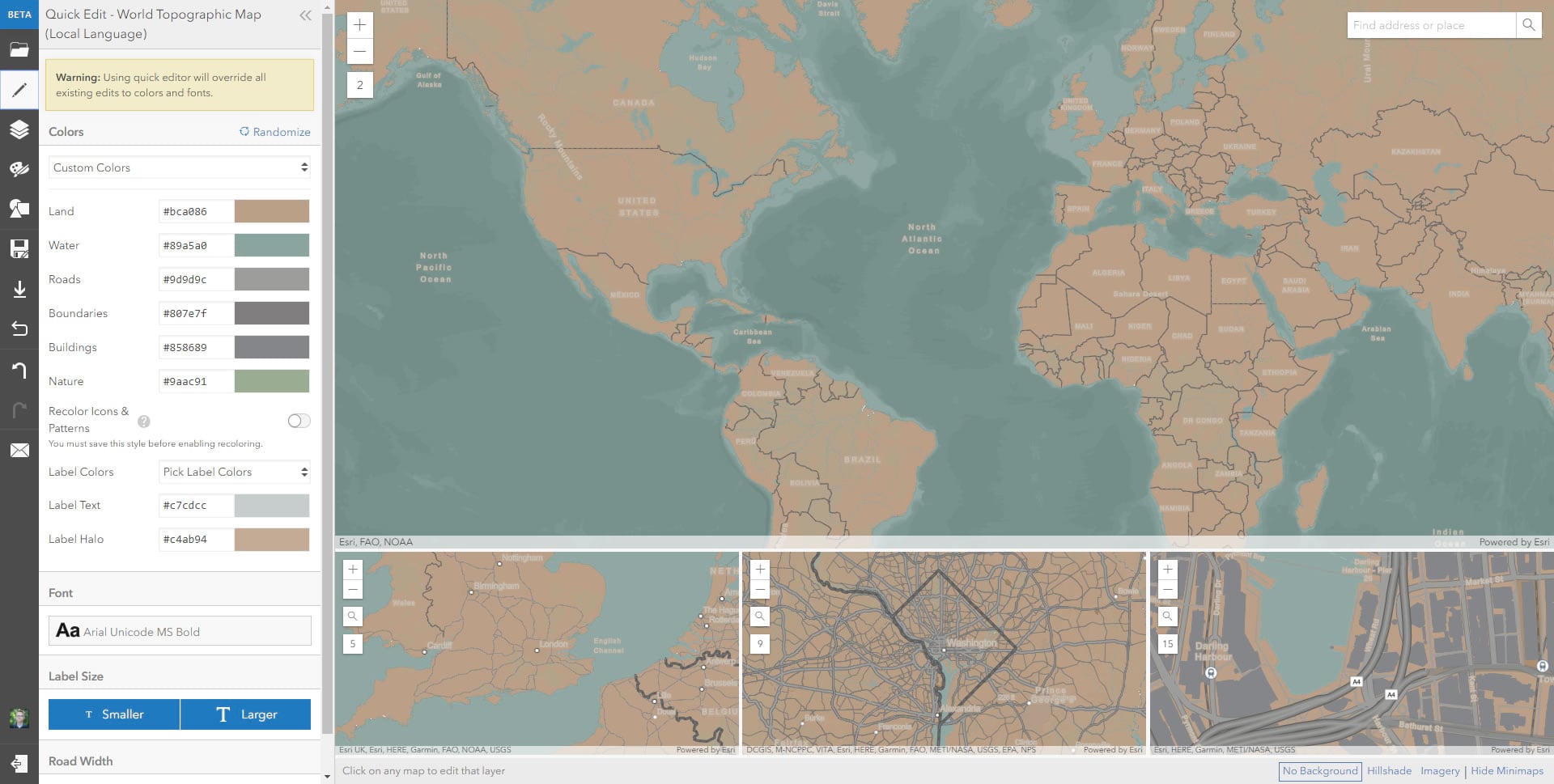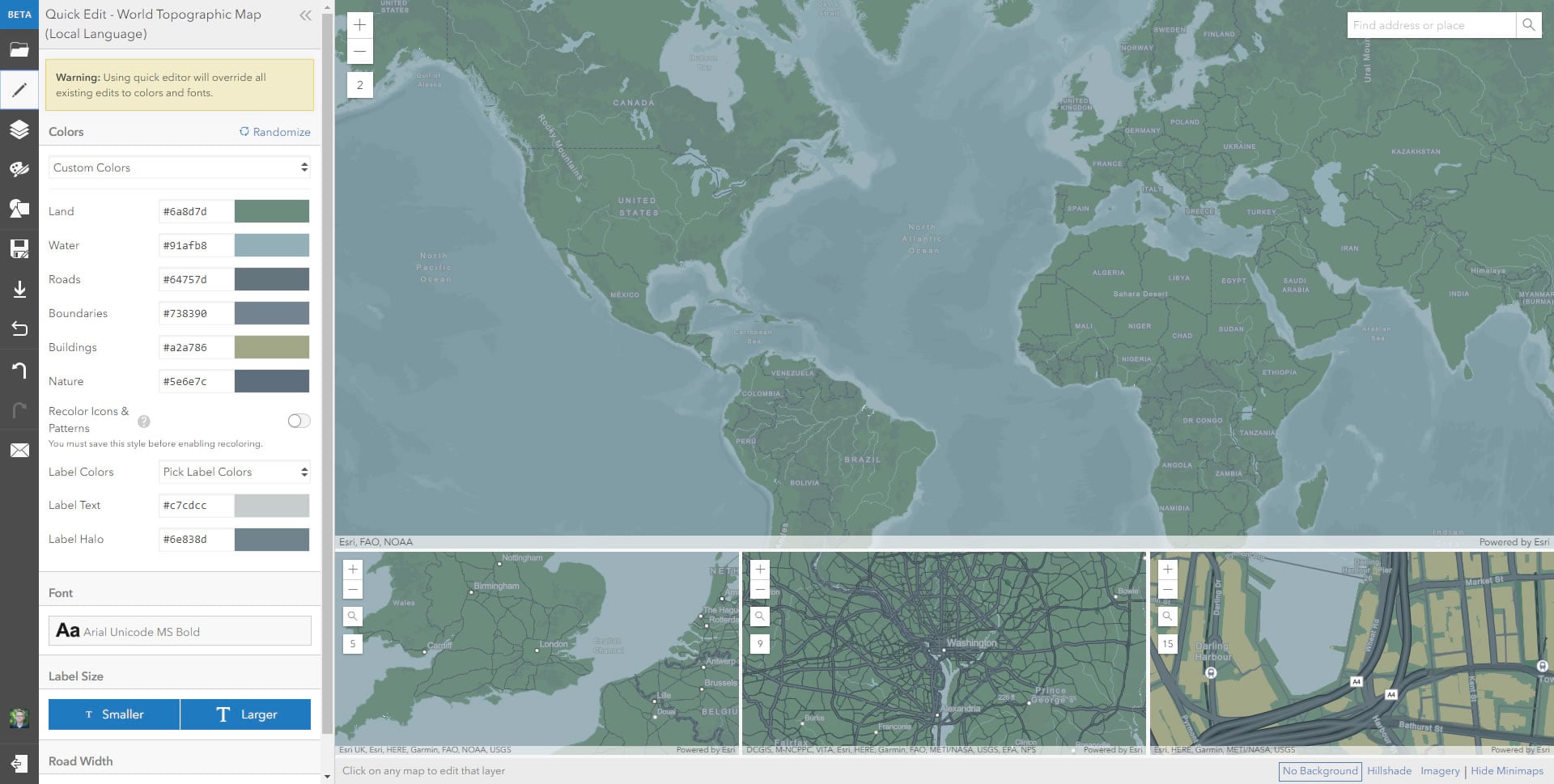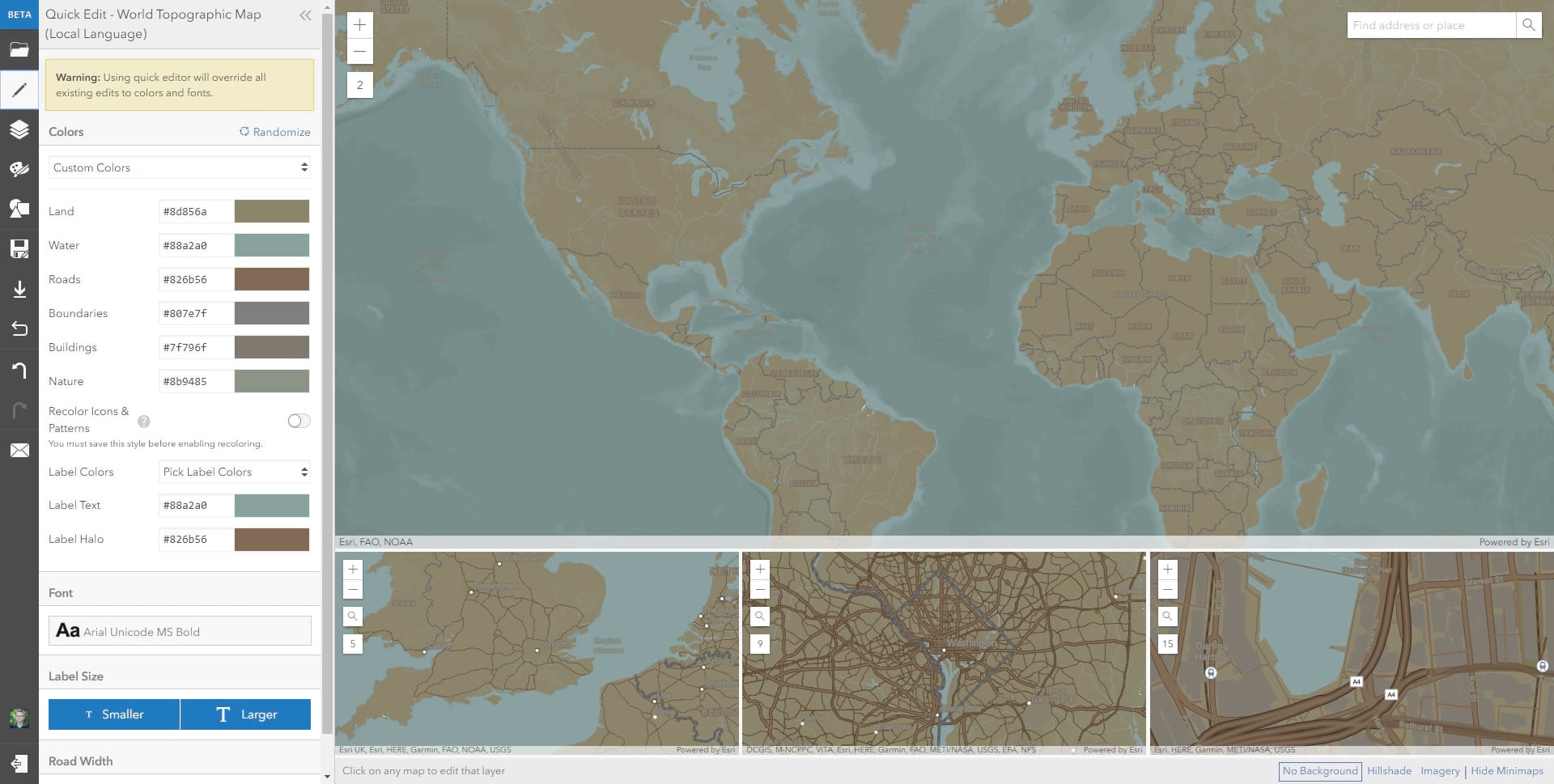 Choosing and changing colors in the Vector Tile Editor is so fast and easy. But getting rolling with some colors at all can be a bit of a challenging start. I mean, what hex value is a forest or a desert or a prairie or a sea? Ah-ha…I have something that may help you! PhotoChrome.io is a web app I collaborated on with Jinnan Zhang (I told you we make lots of fun unofficial map nerd stuff).