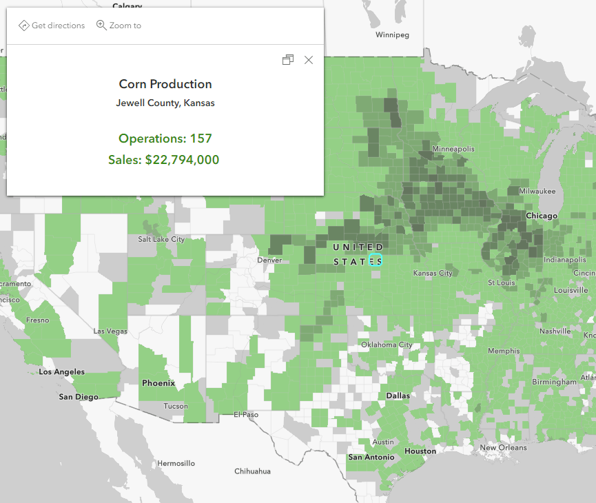 For example, the USDA has a Census of Agriculture layer in Living Atlas which helps us better understand the country’s agricultural resources.