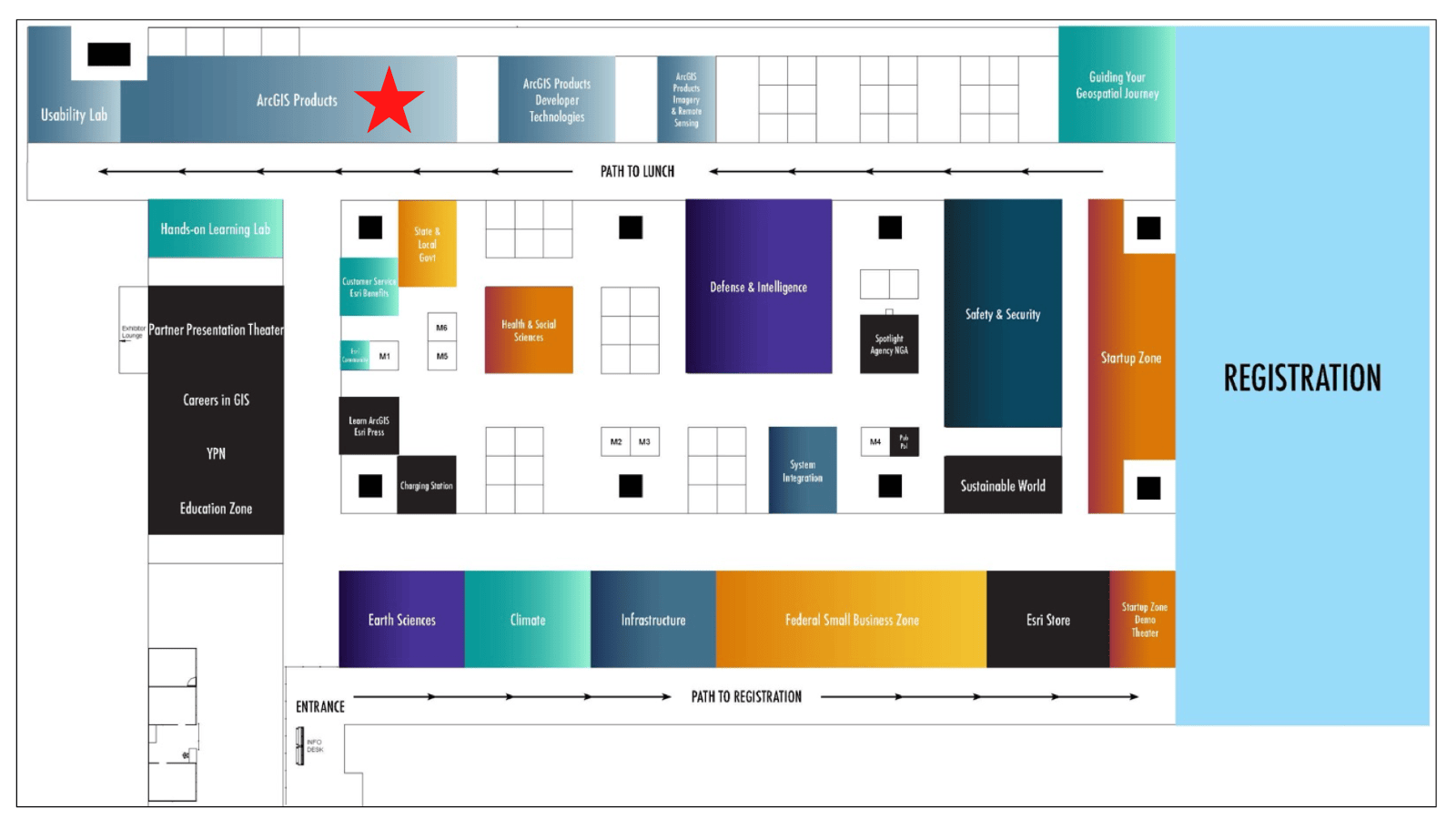 - Visit the ArcGIS Online showcase area to meet technical experts and have your questions answered (located in the ArcGIS Products area on the map below)