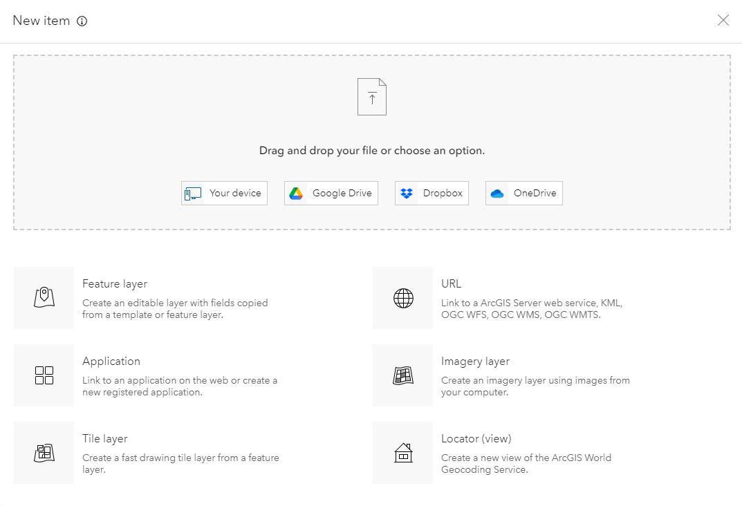 Step 2: From the My Content tab, click New item, and select Feature Layer.