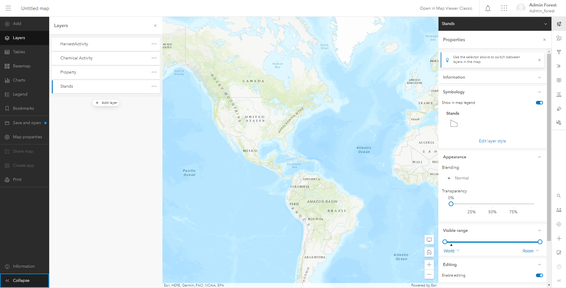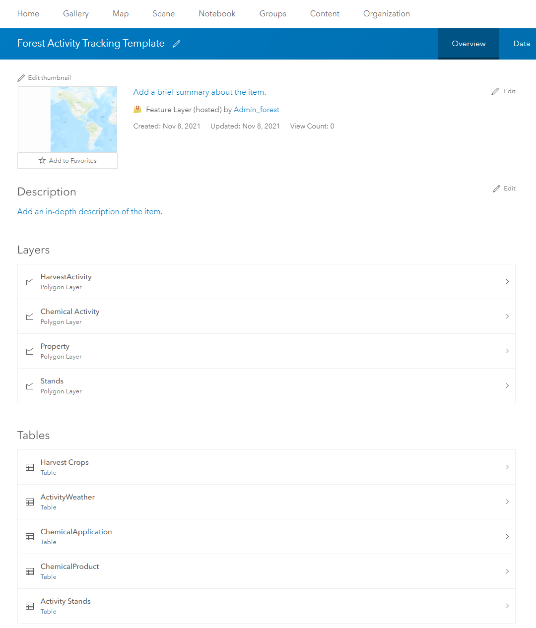Your new feature layer is now published with all of the appropriate layers and tables for collecting and managing forest activities.