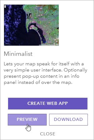 Step 4 – Click Preview. This opens your map in the default configuration for the template.