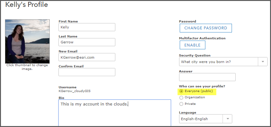 Group managers can invite any user to a group if they know the invitee’s ArcGIS Online username. If as a user you want other members to be able to search for your profile, change the option of who can see your profile to everyone (public) . Note. If you are unable to update your profile, get in contact with your administrator as this capability can be turned off for an organization.
