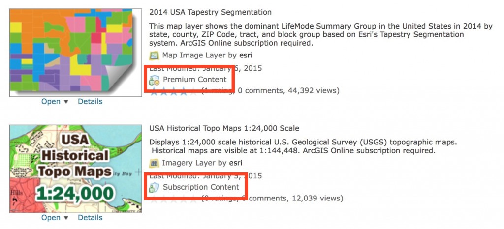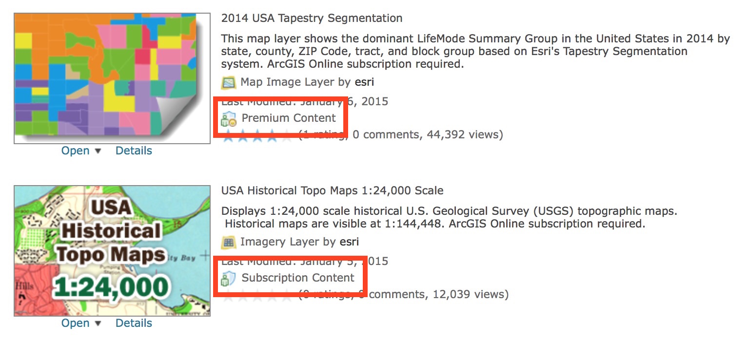 Esri’s Living Atlas of the World provides an amazing source of information for you to create maps and mashups, publish apps, and perform geographic analysis. Most of the layers in the Atlas are free to use, but some high-quality layers published by Esri’s Content Team are designated as subscriber content. Some subscriber content layers are also considered premium content.
